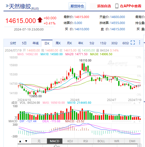 本周橡胶期货触低14300附近后开始反弹,目前已经重返14600上方。