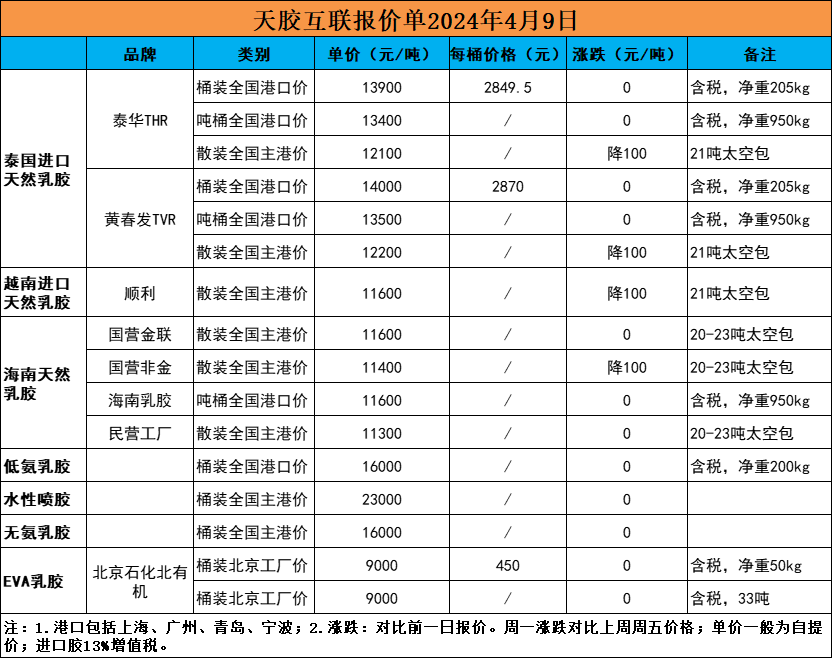 部分品牌乳胶继续降价!天然乳胶现货价格(2024.04.09)