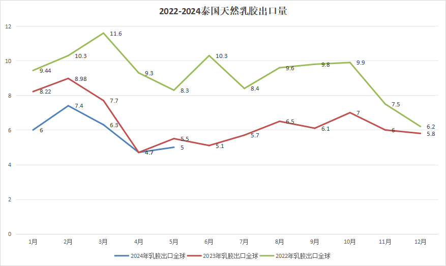 橡胶期货依旧在15000附近震荡,国内天然乳胶现货价格变化不大:泰华THR桶装15300元/吨,黄春发桶装15400元/吨;泰华THR散装(太空包)13300元/吨,黄春发散装(太空包)13400元/吨。2024年5月,泰国出口天然橡胶(不含复合橡胶)23.4万吨,今年前5个月合计为122.7万吨,同比增10%。其中,标胶合计出口78.4万吨,同比增31%;烟片胶出口13.9万吨,同比降9%;乳胶出口29.4万吨,同比降16%。1-5月,出口到中国天然橡胶合计为42.3万吨,同比降6%。其中,标胶出口到中国合计为33.4万吨,同比增24%;烟片胶出口到中国合计为1.2万吨,同比降64%;乳胶出口到中国合计为7.7万吨,同比降48%。2024年5月,泰国出口混合胶8.9万吨,今年前5个月合计为48.2万吨,同比降47%;混合胶出口到中国合计为46.7万吨,同比降48%。综合来看,泰国前5个月天然橡胶、混合胶合计出口170.9万吨,同比降15%;合计出口中国89万吨,同比降34%。从数据上来看,5月份泰国天然乳胶出口5万吨,同比下降10%,环比增长6%,今年1-5月份,合计出口量同比下降16%,创近三年的新低。22年是48.94万吨,今年就只剩下29.4万吨,相比22年下降幅度将近40%!两三年的时间,泰国天然乳胶出口下降这么多,主要在于之前特殊情况使得乳胶手套需求大涨,于是天然乳胶的供应快速扩张。随着特殊情况的结束,乳胶手套产能过剩,需求大幅下滑,乳胶的供应也大幅下降,上游也开始主动减产。泰国天然乳胶出口下降还有一个原因,市场份额的丢失,尤其是在中国市场份额出现下降。相反,越南胶今年1-5月份出口增长61%,主要是中国市场增长。也就是说泰国胶丢失的市场份额被越南胶消化了。泰国胶之所以市场份额不断丢失,主要原因是价格太贵,性格比下降。而且下游客户结构也在变化,越来越倾向于便宜的原料。以上纯属个人分析,不构成投资建议,投资者据此投资,投资风险自我承担。