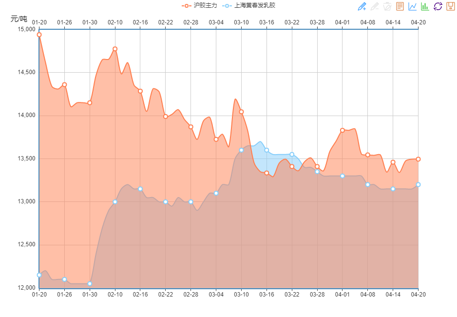 不知道大家发现了没有,天然乳胶现货价格自从春节后上涨后,至今都没有什么太大的波动,这个价格已经维持两个月了,我们从价格趋势图就可以看出,从2月10日至今,价格都没有波动。