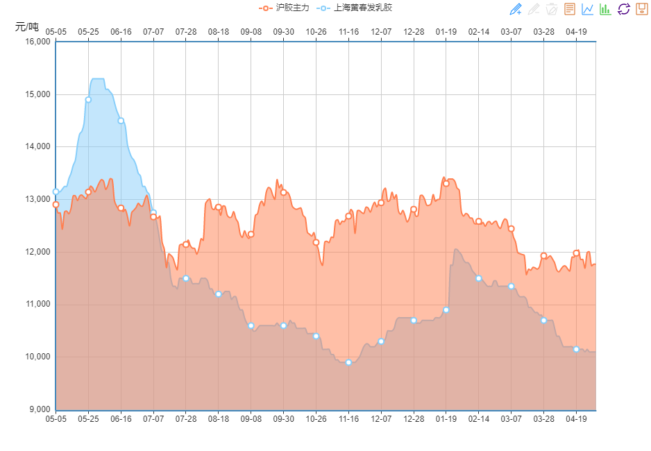 橡胶期货五一节后开盘,盘面变化不大,目前依然在11800附近震荡。五一节后,天然乳胶市场行情有所好转,价格小幅上涨,部分贸易商报价有所上涨:泰华THR桶装10100元/吨,黄春发桶装10200元/吨;泰华THR散装(太空包)8900元/吨,黄春发散装(太空包)9000元/吨。虽然天然乳胶价格在4月份创下新低,但跌幅和跌速明显放缓,尤其是4月中下旬,价格下跌幅度已经收窄。4月上旬价格下跌较快主要原因在于我们之前说的,今年海南开割正常,新胶水上市在即,浓乳加工厂和贸易商要清掉手中的库存,所以低价甩卖。相比干胶,浓乳的储存和保质期明显要短很多。贸易商和加工厂的清库存行为加速了价格下跌,但进入5月份后,从贸易商得到的反馈是库存清的差不多了,那么低价货源自然有所减少,价格下跌幅度自然减少。随着新胶水的上市,贸易商报价上涨意愿较为强烈。5月份,海南迎来大规模割胶,可能存在放量趋势。而且宋干节后,泰国、越南那边都要开割了,也就是说,供应端的压力又会增长了。虽然供应端压力在逐步上涨,但国内当下超期滞港货源已得到一定消化,而且浓乳贸易利润下降,贸易商这两个月补货意愿不强,进口量下降。而国内新胶水也不可能一下上量,所以5月份供需矛盾有可能得到缓解。马上年中,5、6、7月份各种促销来临,节后终端消费的好转可能会使得下游需求有所好转。一旦需求好转就会刺激乳胶价格上涨。因此,我们预计5月份国内天然乳胶价格大跌可能性不大,继续下跌空间有限,价格可能存在一定的上涨空间。以上纯属个人分析,不构成投资建议,投资者据此投资,投资风险自我承担。
