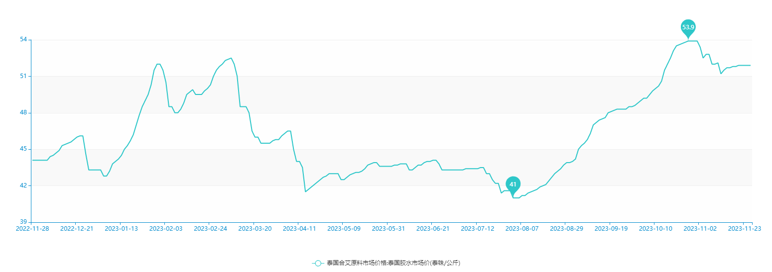 橡胶期货在14000附近震荡,天然乳胶现货价格变化不大:泰华THR桶装11500元/吨,黄春发桶装11600元/吨;泰华THR散装(太空包)10000元/吨,黄春发散装(太空包)10100元/吨。截至11月27日,泰国南部产区合艾地区胶水原料收购价在51.90泰铢/公斤。说明当前胶水原料原价依然维持在偏高水平。虽然泰国属于旺产季,供应呈现季节性上量,但泰国当地降水依然频繁,对割胶存在较大影响,影响产量提升,以至于胶水价格维持偏高水平。据我们橡胶交流群在泰国那边的朋友反馈,目前南部产区降水依旧频繁。降雨天气对原料供应产生了持续性的影响,且加工厂成品库存不高,以销售远月船货为主,部分胶农不愿出售,适量囤货,所以说胶水原料的高位运行对天然乳胶现货价格存在较强的支撑,毕竟成本在这。而国内距离停割还剩下一个多月,业内人士预计2024年元旦左右停割,说白了,割不了多久了,还剩下一个月多一点而已。由于临近停割,上游加工厂囤货和惜售情况有所加剧。目前海南浓乳收购价在12.6元/公斤,胶水原料也差不多维持着高位收购价,说明加工厂想在停割前多储备一些货源,等停割出售。国内临近停割,加工厂以储备原料为先,并不着急出货,使得市场货源并不宽松,尤其是低价货源很少,价格“砍不下来”。贸易商手中的货多数成本较高,他们也不愿意低价出货。就算橡胶期货下跌,但他们能降价的幅度也不大。一旦橡胶期货出现他们,他们立马提价,没有降价的空间。与此同时,下游需求一般,并没有使得天然乳胶价格产生较强的向上驱动力,价格短期内也难以大涨,所以说维持当前窄幅震荡。换句话来说,维持窄幅震荡,稳定的价格对于下游乳胶制品厂家来说何尝不是一种好事呢?至少避免了价格频繁波动,成本忽高忽低。以上纯属个人分析,不构成投资建议,投资者据此投资,投资风险自我承担。