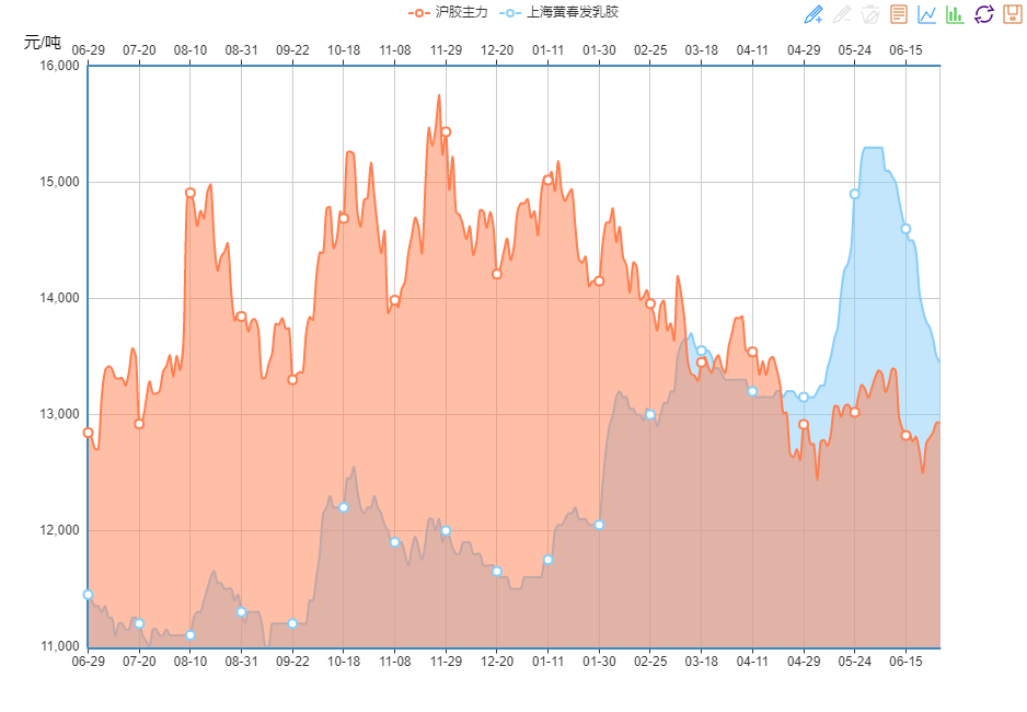 从现在的报价来看,泰国天然乳胶桶装价格一万三附近,散装已经跌破一万二,即将回到今年春节后的价格。这表明5月份以来的供货短缺问题已经得到了彻底的扭转,短期内不存在供货紧张问题。