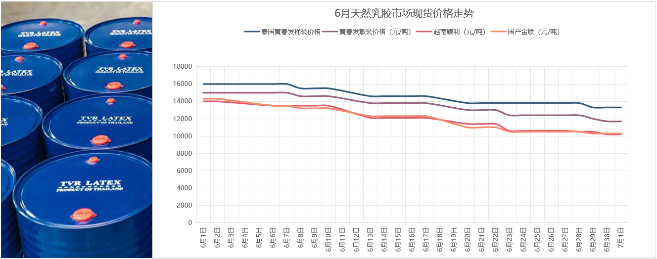 本周天然乳胶现货价格继续下跌,6月以来现货价格下跌幅度已经超过了3000元/吨,从当前价格和往年行情来看,未来下跌空间还有2000元/吨左右。不过接下来价格下跌幅度会放缓,暴跌行情可能不会出现,而是缓慢下跌。1、央行行长表态货币政策将继续从总量上发力,橡胶期货上涨!据中国人民银行网站6月27日消息,近日,中国人民银行行长易纲在接受专访中明确表示,货币政策将继续从总量上发力以支持经济复苏,同时也要用好支持中小企业和绿色转型等结构性货币政策工具。易纲认为,中国的货币政策一直是与支持实体经济发展相适应的。广义货币M2和社会融资增速与名义GDP增速基本匹配,保持流动性合理充裕,支持中小企业发展以实现就业目标。天然橡胶总库存较上周增加1906吨至279031吨;仓单库存较上周减少160吨至253220吨。东南亚和进口市场。本周泰国原料价格小幅整理,泰国产区南部仍有降雨,但并没有影响胶水上量。本周越南产区天气良好,割胶工作开展顺利,原料产出稳步增加中。浓乳加工厂生产利润受损,对原料的采购积极性降温。东南亚供应处于扩张阶段,天气对割胶影响不大,产出正常。市场上出货的越南胶明显增长,泰国乳胶现货也大幅增长。国内市场云南产区天气好转,割胶工作开展相对正常,原料收购价格略微走跌。海南产区目前开割情况依旧维持偏低状态,大部分区域处于4-5成状态,少数区域能够达到6成左右,整体情况将出现好转。预计这次台风过后,7月份能大规模开割。供应上未来是确定的,增长处于可预见的范围之内,未来供应只会增长不会下跌,除非有天气扰动,不然供应会处于增长中。下游乳胶制品企业随着采购成本的下降和部分接单,情况有所好转,相比之前下降了不少,有利于刺激他们开工。所以,接下来生产成本的下降或促使开工率升高。气球工厂开工大致在三五成,原料库存不高,但因订单不景气,采购需求不旺。江浙安徽一带发泡工厂开工在四五成,陆续还有原料交货入厂,生产积极性一般。虽然原料价格的下跌,工厂存在一定生产利润,但因进入淡季,生产积极性并不高。而且国内订单流失不少,以至于采购不佳。目前国内疫情又有零星反弹,市场情绪较为低落。因为天然乳胶现货处于下跌趋势之中,而且当前价格相比往年依然处于高水平阶段,预计下周价格依然继续下跌,但下跌幅度会放缓。免责声明:以上纯属个人分析,不构成投资建议,投资者据此投资,投资风险自我承担,与本平台和作者无关。