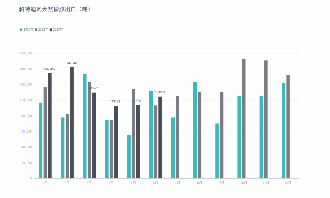 6月非洲产胶国科特迪瓦橡胶出口104934吨,今年