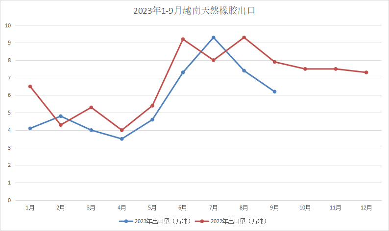 橡胶期货回落至14100附近,天然乳胶现货价格稍微降价:泰华THR桶装11700元/吨,黄春发桶装11800元/吨;泰华THR散装(太空包)10400元/吨,黄春发散装(太空包)10500元/吨。2023年9月越南出口天然橡胶6.2万吨,今年前三季度合计51.2万吨,较去年的59.7万吨同比降14%。其中,标胶出口31.7万吨,同比降8%;烟片胶出口4.6万吨,同比降13%;乳胶出口14.6万吨,同比降25%。2023年9月越南出口混合橡胶12.6万吨,今年前三季度合计93.6万吨,较去年的79.4万吨同比增18%。其中,SVR3L混合出口28万吨,同比增加38%;SVR10混合出口64.3万吨,同比增11%;RSS3混合出口1.5万吨,同比增10%。2023年9月越南天然橡胶出口中国2.2万吨,今年前三季度合计14.4万吨,较去年的13.5万吨同比增7%。2023年9月越南混合橡胶出口中国12.5万吨,今年前三季度合计93.3万吨,较去年的79.4万吨同比增加18%。其中,SVR3L混合出口27.8万吨,同比增37%;SVR10混合出口64.3万吨,同比增11%;RSS3混合出口1.4万吨,同比增5%。综合来看,前三季度,越南天然橡胶、混合胶合计出口144.8万吨,较去年的139.1万吨同比增4.1%;合计出口中国107.7万吨,较去年的92.9万吨同比增16%。就天然乳胶数据而言,越南今年前三季度天然乳胶出口14.6万吨,而去年是19.4万吨,少了4.8万吨,可以说是大幅下降。几乎每个月的出口量都低于去年。就连9月份也是如此,9月天然乳胶价格大涨,但越南天然乳胶9月份的出口依然少于8月份的出口量。原本以为涨价会刺激出口,但实际并非如此,这也难怪9、10月份价格一直在涨价了。9月份出口下降反映出了价格上涨并没有使得供应预期的增长。预期并未实现主要在于天气,这两月当地多雨的天气,对割胶影响非常明显,以至于供应一直上不了,所以价格上涨。以上纯属个人分析,不构成投资建议,投资者据此投资,投资风险自我承担。