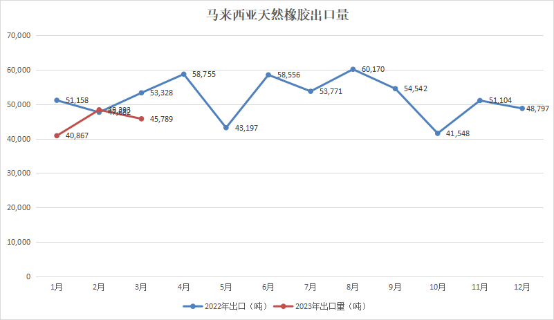 据马来西亚统计局5月9日消息,2023年3月天然橡胶出口量同比降14.1%至45,789吨,环比降5.4%,一季度合计135049吨。其中50.8%出口至中国,其他依次为德国14.7%、土耳其4.2%、巴基斯坦2.4%、埃及1.7%。