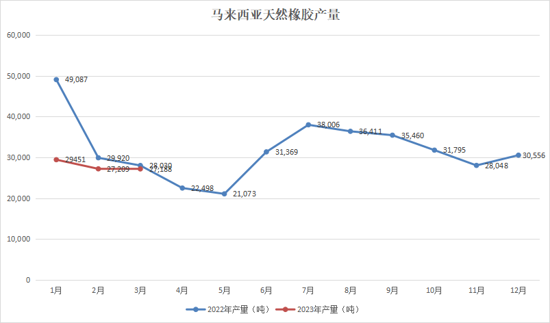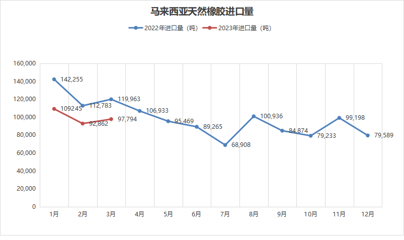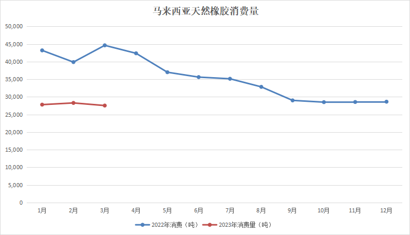 2023年一季度马来西亚消费量大概在8.4万吨,相比去年的12.8万吨,下降4.4万吨,同比下降幅度高达35%。马来西亚自从去年下半年需求下降以来,已经连续下降,马来西亚消费量的持续下降说明海外需求继续疲软。