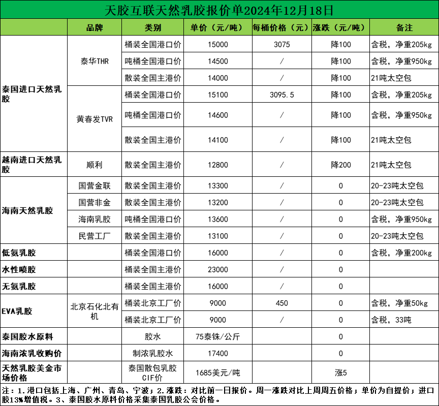 每吨降价100元!天然乳胶现货价格(2024.12.18)