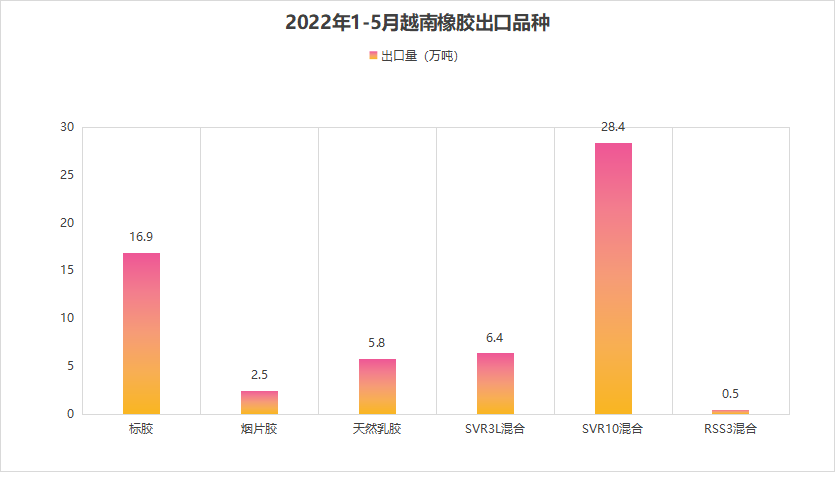 2022年5月越南天然橡胶出口到中国的占越南天然橡胶出口的18.5%,2022年1-5月越南天然橡胶出口到中国的占越南天然橡胶出口的12.5%。数据说明越南天然橡胶出口到中国的占比并不高。