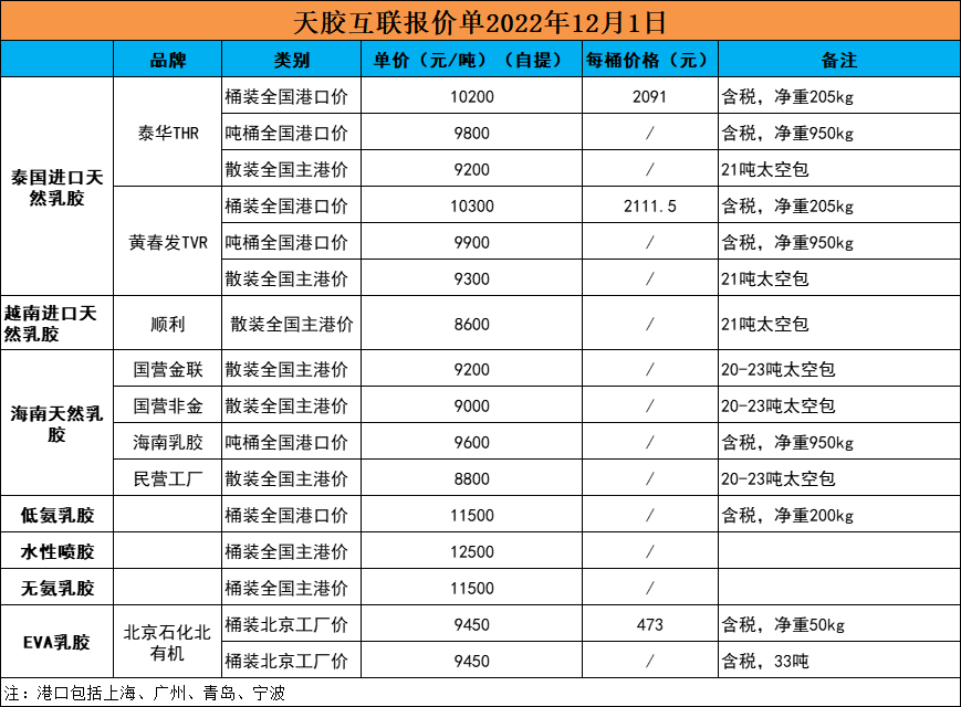 国产乳胶涨到九千以上!天然乳胶现货价格(2022.12.1)