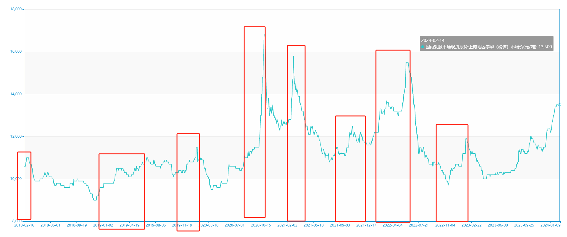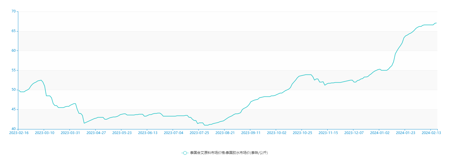 橡胶期货暂未开盘,由于节后刚开始,所以市场报价比较少:泰华THR桶装13700元/吨,黄春发桶装13800元/吨;泰华THR散装(太空包)12600元/吨,黄春发散装(太空包)12700元/吨。农历正月初九,春节假期已经结束,龙年早已开始,回首2023年其实已经没有什么太大的意义。接下来,我们需要把握的是2024年。由于橡胶期货未开盘,外盘未开,而且很多贸易商、工厂还没有完全复工,市场行情冷淡,部分工厂可能要到正月十六日,元宵节过完之后。所以市场报价不多,很多封盘不报价,不过从部分报价来看,价格较节前有所涨价,涨价幅度在300元/吨到500元/吨不等,具体报价要等到明天橡胶期货开盘之后,看橡胶期货的走势,贸易商才会准确报价。不过从目前的情况来看,接下来可能是涨价为主。在我们看来,天然乳胶市场2024年2月份到5月份价格可能存在异动,而且是以涨为主。整体趋势是上涨行情,但涨幅可能没有我们想象的那么夸张,我们预计涨幅可能在1000元/吨左右,价格高位可能在4、5月份。为什么认为涨价,主要从以下五个方面来看:国内已经停割,所以暂无报价,目前主要看泰国。泰国胶水原料价格报价已经到了67.1泰铢/公斤,接近这几年的历史高位。之前我们就说过,泰国胶水原料价格超过60泰铢/公斤之后,泰国进口乳胶桶装的价格是高于13000元/吨,散装高于12300元/吨,越南进口乳胶高于11000元/吨,国产乳胶也是高于11000元/吨的。目前市场报价已经符合这个情况。而当泰国胶水原料价格在70泰铢/公斤附近的时候,国内天然乳胶报价,泰国进口乳胶报价在14000元/吨,散装报价在13000元/吨附近,越南进口乳胶报价在12000元/吨附近,国产乳胶13000元/吨左右。胶水原料价格和天然乳胶价格呈现一种正相关的走势。原料价格对天然乳胶价格存在较强支撑。其实,从天然乳胶近五年价格走势特点来看,一年中有三个阶段天然乳胶价格存在较大的上涨概率,分别是农历春节左右,一般是每年的1-2月份;开割前,每年的4、5月份;国庆节前后,10月份。农历春节前后已经每年4、5月份上涨的主要动因在于天然乳胶的特性,橡胶季节性表现,停割,供应减少,价格上涨。10月份上涨的主要动因在于夏秋季节台风活动影响割胶,导致短时的供应紧张,而传统“金九银十”是国内生产旺季,所以价格上浮概率较大。我们以泰国进口乳胶泰华桶装为例子,梳理从2018年以来的价格表现。当然,因为有几年属于特殊情况,有特殊情况的影响。农历春节之后的表现也有下跌的,2018年,2020年,2021年冲高回落,2023年冲高下跌。但总体而言从往年经验来看,接下来几个月天然乳胶价格上涨符合季节性表现。橡胶期货跟天然乳胶价格具有很强的关联性。2024年2月18日已经开工,但是由于橡胶期货没开盘,所以很多贸易商也没有怎么报价,因为他们不知道橡胶期货开盘怎么走。但农历春节期间,外盘橡胶期货明显走强,日胶涨到了297.25,2月8日到2月17日涨幅达到了7.28%。表现相当好。新加坡20号胶期货主力合约Sicom05合约报收154美分/公斤,较2月8日收盘价上涨1.1%。而且我们农历春节假期期间,外盘现货价格也出现了小幅上涨。如果外盘影响较大,那么,2月19日开盘,国内橡胶期货可能会出现波动,橡胶期货波动也必然影响天然乳胶现货报价。以上纯属个人分析,不构成投资建议,投资者据此投资,投资风险自我承担。
