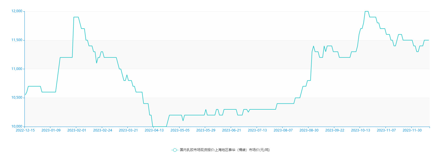 总的来说,当前胶水原料价格高位和减产事实对于天然乳胶现货价格存在较强的支撑,天然乳胶现货价格易涨难跌,价格表现的相当抗跌。贸易商涨价情绪较浓,未来大概会维持这种状态持续到2024年春节后。