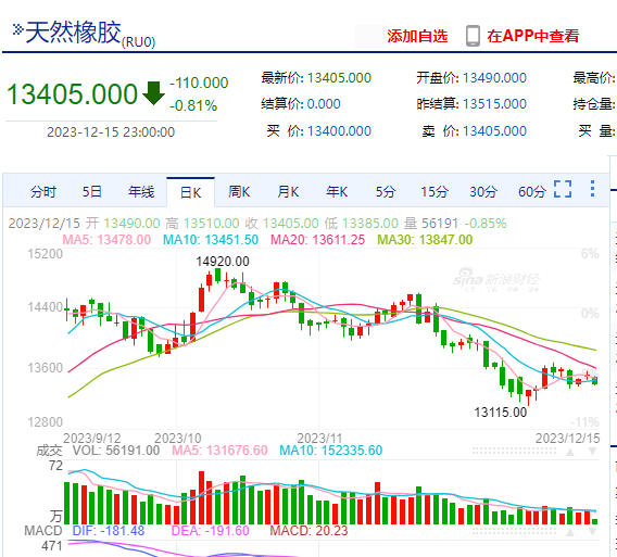 天然橡胶总库存较上周增加10621吨至180121吨;仓单库存较上周增加14000吨至145570吨。