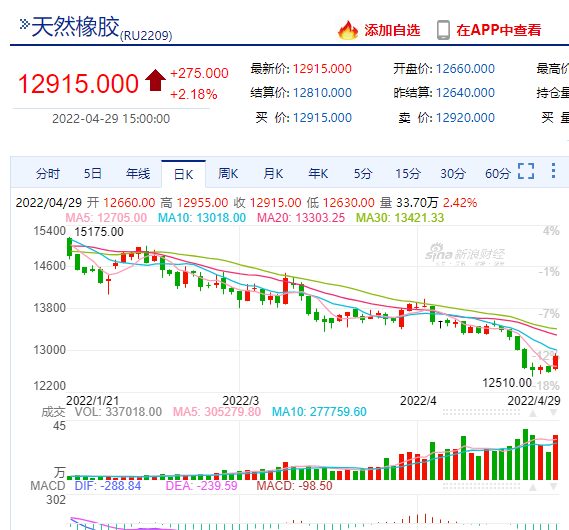 1、本周橡胶期货先跌后涨。(橡胶RU2209合约:12915)。橡胶主力RU2209本周先跌后涨,一度触及12510,震荡几日后周五出现反弹,涨至12915,相比上周,几乎没什么变动。橡胶期货的大幅下挫跟宏观环境有关,4月下旬,随着美联储加息导致流动性锁紧预期,以及国内多地出现疫情反弹、防疫政策收紧,使得投资者普遍产生悲观情绪,橡胶价格不断下跌。周五反弹一则受到经济复苏的利好刺激,二则超跌反弹。2、天然乳胶现货市场价格开始出现松动,但交易冷清,订单很少。截止到2022年4月29日(周五)泰华THR桶装13300元/吨,黄春发桶装13500元/吨;泰华THR散装(太空包)12500元/吨,黄春发散装(太空包)12500元/吨。越南顺利船货报价12400元/吨,国产乳胶12100元/吨。天然乳胶现货市场供需两弱格局依然不改,交易冷清,价格也没有什么变动。主要是下游制品企业要么因为疫情封控,不能开工,要么原材料受阻,或者订单减少,成品库存累计,不愿意开工。当前现货价格,使得下游制品企业采购意愿非常低。1、2022年3月份中国天然乳胶进口量大幅下滑26.78%,预计4月份将继续下滑!2022年3月天然乳胶进口量4.97万吨,环比增加87.85%,同比减少26.78%。4月份,不仅船货进一步推迟,而且国内受疫情影响,防疫措施升级,导致下游需求创新低。加上现在价格高位,贸易商补货意愿受挫,根本不愿意订货。所以,我们估计4月份进口量可能进一步下滑。2、ANRPC报告发布:2022年3月全球天然橡胶产量继续增产4.9%!ANRPC发布的3月报告预测,2022年全球天胶产量料同比增加2.3%至1429.2万吨。其中,泰国增1.4%、印尼增4%、中国增1.8%、印度增1.2%、越南降0.4%、马来西亚增6.5%。3、时隔22个月,上证指数再次击穿3000整数关口!4月25日,A股市场全线走低,超4300股飘绿。时隔22个月,上证指数跌破3000点。4、泰国2022年一季度天然橡胶出口数据发布:同比增长7%!2022年一季度,泰国出口天然橡胶(不含复合橡胶)合计为92.8万吨,同比增7%。其中,标胶合计出口45.4万吨,同比增18%;烟片胶出口14.1万吨,同比增13%;乳胶出口31.3万吨,同比则降11%。天然橡胶总库存较上周增加1423吨至263585吨;仓单库存较上周增加4890吨至252990吨。泰国天然橡胶主产区原料价格开始小幅下跌,本周泰国产区降雨量明显减少,有利于泰国产区产量增加,但整体来说产区供应依旧维持偏紧状态,未来一周泰国南部降雨预期会增加至中高位状态,对割胶工作开展存在影响。越南天然橡胶主产区天气良好,割胶工作开展顺利,西宁一带开割率大致达8成,平阳、平福一带开割率大致在4成附近,越南全境开割率达6成,产量大致是旺产季的35%。不过新鲜胶水产出较少,收购价格居高。未来一周雨水增加,将影响割胶工作开展。国内云南西双版纳天气较好,收胶工作正常进行,本周原料价格大幅走跌。勐腊个别区域疫情反复,部分收胶点停止收胶。海南产区,国营、民营胶园陆续开割,但整体产量依旧维持低位状态,大部分加工厂表示整体开割预计要在五月陆续开始。总的来说,4月份供应处于低位状态,新一轮供应旺季要到5月份开始。下游制品企业生产积极性不高,开工率低位,需求惨淡。医疗手套工厂虽然疫情需求不错,但出口订单下滑,原料采购热情有所下降。发泡行业开工低位,大致在4-5成,成品库存高位。疫情形势严峻,房地产不景气,劳保手套行业同样不乐观。受疫情影响,会展庆典活动大幅减少,气球使用量少。鞋材这块因为终端消费热情低,行情也不是很好。综合而言,4月全球依然处于低产期,且运费偏高、船期延迟情况尚存,同时中国受疫情的冲击,进口乳胶船货到港量处于偏低水平,导致国内乳胶现货流通量趋紧,商家逐渐出现惜售情绪。4月份,疫情冲击国内经济,终端需求受挫,国内乳胶现货市场因需求平淡拖拽,胶价开始走跌。疫情影响,发泡行业受旅游业冲击明显,气球行业出口订单缩减,开工不足,医疗手套基本满负荷开工,劳保、家用手套生产企业面对高价泰国乳胶生产积极性不高。5月份,全球迎来新一轮的旺季,泰国、越南、国内海南都要大规模开割,5月底,新胶水大概率上市,6月供应放量增长。所以,供应这块会出现增长。与此同时,因为疫情使得封控在上海港内的现货即将投放市场。目前上海疫情数据出现好转,预计5月份上海形势能得到好转,一旦上海疫情形势好转,疫情期间滞留在上海港大量现货将释放出来,预计会对下游市场形成冲击。近期已经看到部分供货商在销售上海港的货源了。不过现在上海港现货很多地方不敢接,至于能带来多大的冲击,要看接货的情况。5月份,天然乳胶现货将面临两个主要的压力:一个是上海港滞留的现货,一个是5月底新胶水上市,预计5月下旬现货价格或下跌。免责声明:以上纯属个人分析,不构成投资建议,投资者据此投资,投资风险自我承担。