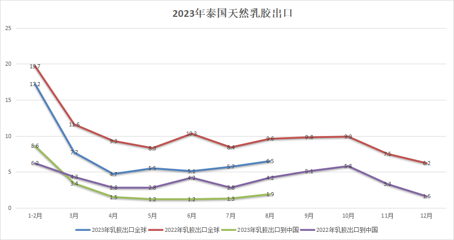 今年1-8月泰国出口天然乳胶同比下降32%,市场暂无回暖迹象!