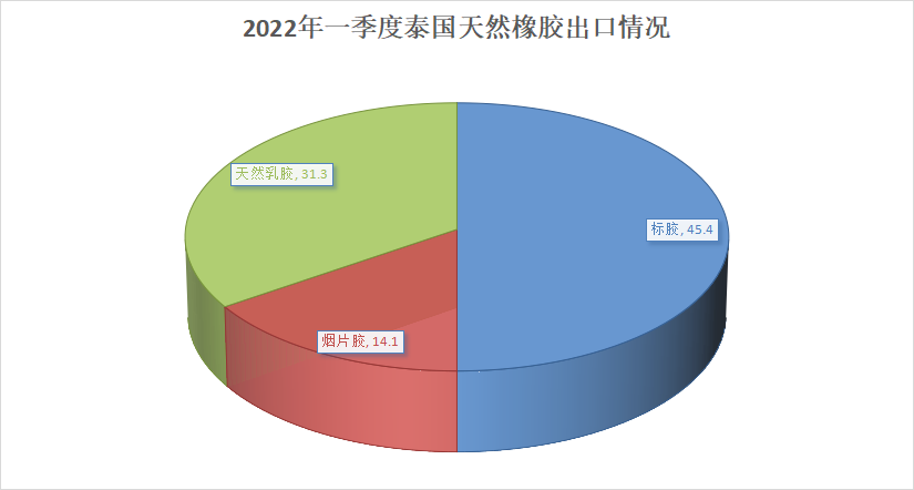 2022年一季度,泰国出口天然橡胶(不含复合橡胶)合计为92.8万吨,同比增7%。其中,标胶合计出口45.4万吨,同比增18%;烟片胶出口14.1万吨,同比增13%;乳胶出口31.3万吨,同比则降11%。