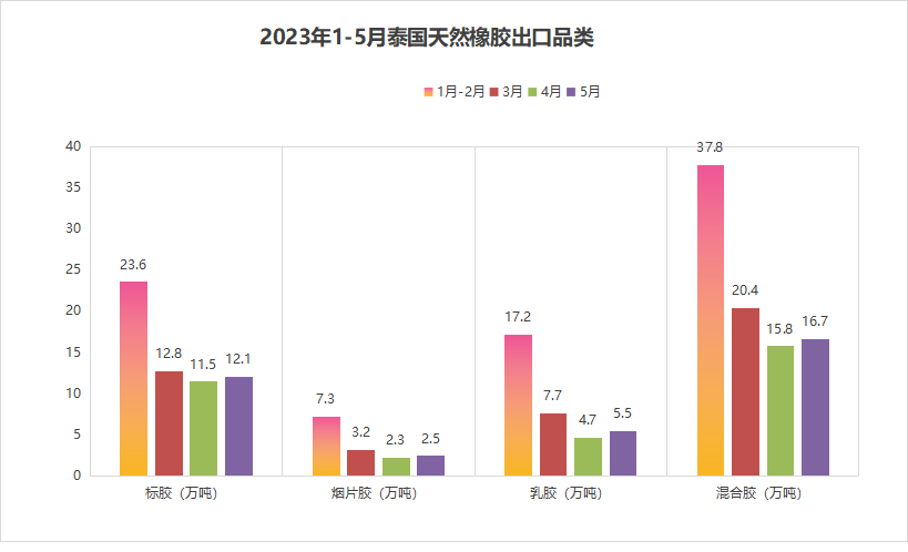 综合来看,泰国前5个月天然橡胶、混合胶合计出口202万吨,同比增0.1%;合计出口中国135.2万吨,同比增33%。