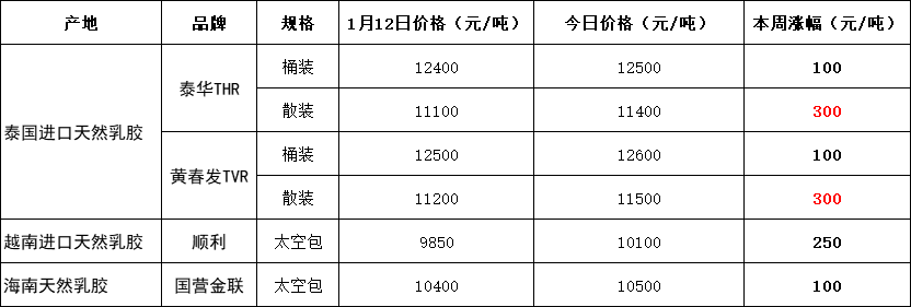 橡胶期货13800上方偏强震荡,天然乳胶现货涨价:泰华THR桶装12500元/吨,黄春发桶装12600元/吨;泰华THR散装(太空包)11400元/吨,黄春发散装(太空包)11500元/吨。随着橡胶期货的偏强震荡,天然乳胶现货价格又开启了新一轮的价格调整,价格大幅攀升。其实,我们已经多次分享了我们的观点,以及我们在我们的交流群中也多次表明了我们的观点。国产乳胶由于此前并没有怎么降价,所以本轮涨价不多,100元/吨。涨幅较大的主要是泰国进口乳胶散装,市场上有的报价已经到了11700元/吨,涨幅在500元/吨。越南进口乳胶再次涨到了10000元/吨以上。这一波上涨完全在我们的预料之内。道理很简单,有时候涨价不一定要看需求,有时候市场普遍认为春节前后有涨价预期,也会助推价格上涨。比如目前大家都认为春节后要涨价,市场也这么认可,那么,不一定要等到春节,就这个预期也会使得价格提前涨一波。价格波动并不完全反映当前的基本面,有时候也可能是反映了未来的基本面。从目前基本面来看,可能还有进一步涨价的可能性。2023年的数据已经差不多陆续出来了,泰国、越南天然乳胶产能、出口纷纷减少,国内天然乳胶产能和进口减少。产能、进出口数值的下降意味着停割期的库存并不多。据我们了解的情况,国内大的加工厂冬储都不多,民营厂冬储在千吨以上的也不多,大多都是几百吨。那就说明部分库存流转到了贸易商和供应链企业手中。而下游工厂,我们询问了一下,贸易商目前销量还可以,下游厂商备货热情比较高,都在担忧春节后可能会涨价,所以部分厂家提前下订单、签合同。不签不太好判断库存多数在贸易商手中还是下游乳胶制品厂家手中。泰国胶水原料价格目前还在涨,59.2泰铢/公斤,即将破60泰铢/公斤,按照这个情况,本周很有可能突破60泰铢/公斤。胶水原料价格的高位运行使得支撑较强,这就决定了美金市场价格会进一步上涨。以上纯属个人分析,不构成投资建议,投资者据此投资,投资风险自我承担。