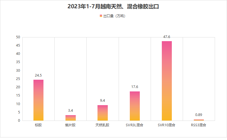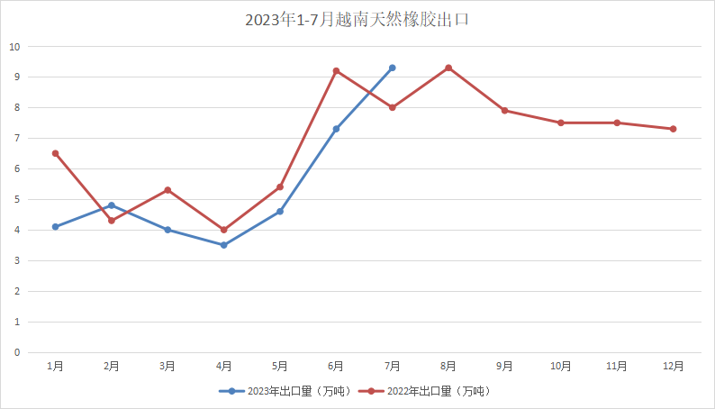 橡胶期货目前依旧13300附近震荡。天然乳胶现货涨势放缓,止涨:泰华THR桶装10700元/吨,黄春发桶装10800元/吨;泰华THR散装(太空包)9500元/吨,黄春发散装(太空包9600元/吨。2023年7月,越南出口天然橡胶9.3万吨,今年前7个月合计37.6万吨,较去年的42.7万吨下降12%。其中,标胶出口24.5万吨,同比降6%;烟片胶出口3.4万吨,同比降15%;乳胶出口9.4万吨,同比降24%。2023年7月,越南出口混合橡胶15.1万吨。今年前7个月合计65.8万吨,较去年的55.6万吨增加18%。其中,SVR3L混合出口17.6万吨,同比增51%;SVR10混合出口47.6万吨,同比增10%;RSS3混合出口0.89万吨,同比增19%。2023年7月,越南天然橡胶出口到中国2.3万吨,今年前7个月合计9.4万吨,较去年的7.8万吨增加21%。2023年7月,越南混合橡胶出口中国15万吨,今年前7个月合计65.6万吨,较去年的55.6万吨增加18%。其中,SVR3L混合出口17.4万吨,同比增49%;SVR10混合出口47.6万吨,同比增10%;RSS3混合出口0.77万吨,同比增10%。综合来看,2023年1-7月,越南天然橡胶、混合胶合计出口103.4万吨,较去年的98.3万吨增加5.2%;合计出口中国75万吨,较去年的63.4万吨增加18%。越南橡胶出口整体上是增长的,但具体到天然乳胶却出现了大幅下降的局面。今年全球天然乳胶市场面临较大的挑战,主要在于下游乳胶制品发泡厂和乳胶手套厂都出现了低迷情况,终端消费低迷,订单减少。而手套厂主要在于产能过剩,目前是去产能阶段,依据就是马来西亚进口量和消费量表现低迷。以上纯属个人分析,不构成投资建议,投资者据此投资,投资风险自我承担。
