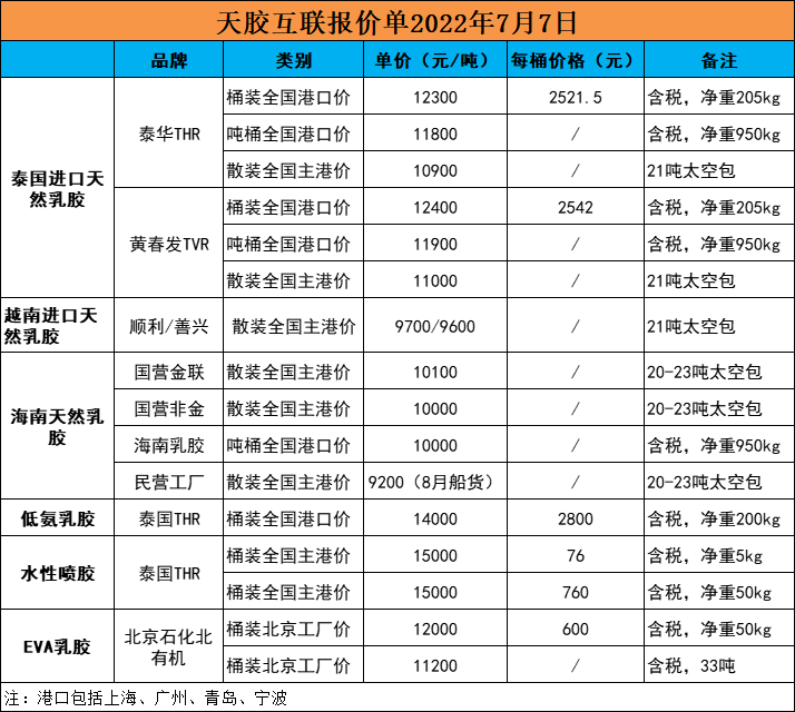 便宜!泰国乳胶原装桶装2521.5元/桶!天然乳胶现货价格(2022.7.7)