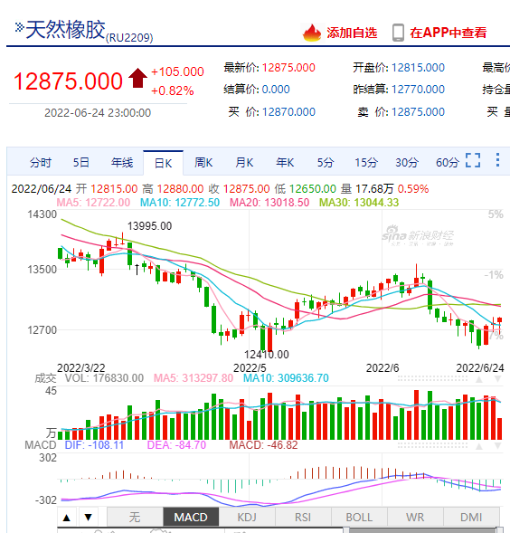 1、本周橡胶期货先跌后涨。(橡胶RU2209合约:12875)