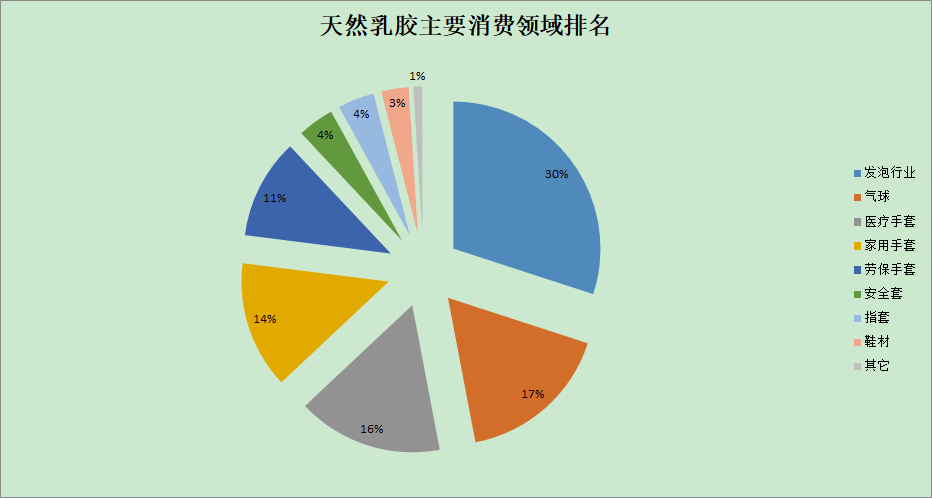 天然乳胶使用量大的是发泡企业,发泡和气球占比47%,占到了天然乳胶的一半。其次是手套类,医疗、家用、劳保等手套厂加起来占比47%。发泡企业、气球厂和手套厂加起来占比达到94%。