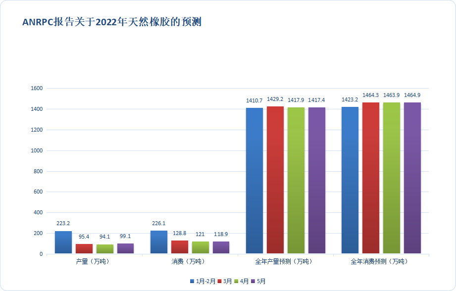 橡胶期货行情不太乐观,虽然说这两日稳定在12700附近震荡行情,但有进一步下跌的风险,未来宽幅震荡的概率较大。天然乳胶现货价格大幅下跌,6月中下旬后,价格下跌较快,表明下游需求非常不理想,导致价格快速下跌。刚需采购部分现货报价参考:泰华THR桶装13700元/吨,黄春发桶装13800元/吨;泰华THR散装(太空包)12900元/吨,黄春发散装(太空包)13000元/吨。ANRPC五月份的报告发布了,根据ANRPC的报告预测,5月份全球天然橡胶产量为99.1万吨,消费量为118.9万吨,供应短缺19.8万吨。与此同时,他们修正了2022年天然橡胶的全年产量和消费,产量修正为1417.4万吨,消费量料修正为1464.9万吨。