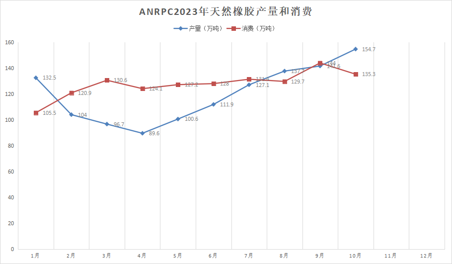 橡胶期货在14100附近震荡,天然乳胶现货价格比较稳定:泰华THR桶装11600元/吨,黄春发桶装11700元/吨;泰华THR散装(太空包)10200元/吨,黄春发散装(太空包)10300元/吨。ANRPC发布了2023年10月全球天然橡胶报告预测,10月全球天然橡胶产量料增5.3%至154.7万吨,较上月增加9.2%;天然橡胶消费量料降0.8%至135.3万吨,较上月下降0.6%。2023年全球天然橡胶产量料同比增加2.3%至1492.7万吨。其中,泰国增2.5%、印尼增1.8%、中国降1.9%、印度增3.8%、越南增4.1%、马来西亚降2.9%、其他国家增2.8%。2023年全球天然橡胶消费量料同比增0.2%至1557.5万吨。其中,中国增3.5%、印度增5.7%、泰国降26%、马来西亚增5.8%、越南增0.2%、其他国家增0.6%。从ANRPC公布的数据来看,自从4月份后,全球天然橡胶的产量每个月都在增长,从4月的89.6万吨增长到了10月份的154.7万吨,连续增长半年。而且ANRPC数据预计今年产量依旧增长2%。ANRPC的数据跟各国的分数据似乎有点差异,也不知道是统计口径不一样。从各国的数据来看,泰国、印尼的产量都在下降。今年泰国前三季度产量下降2.1%,天然橡胶产量319万吨,低于去年同期的326万吨。而印尼前三季度天然橡胶,加上混合胶同比下降高达18%了。ANRPC公布的消费数据来看,今年比较平稳,起伏都不大,每个月都比较稳定,这说明今年全球的需求波动不大,而变量在于产量。也就是说,如果价格出现变化,主要在于产量,因为供需稳定的话,价格一般也比较稳定,不会出现太大的波动。所以今年价格变化主导在于供应端。但如果按照ANRPC的统计数据来看,需求不变,供应增长,价格应该出现下降,不过今年9、10月份价格一度大幅上涨。只能说数据跟市场实际出现了一定的偏差。以上纯属个人分析,不构成投资建议,投资者据此投资,投资风险自我承担。