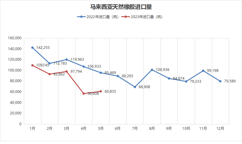 橡胶期货本周有所回落,目前在12300附近震荡。国内天然乳胶市场一般,天然乳胶价格变化不大,现货报价:泰华THR桶装10200元/吨,黄春发桶装10200元/吨;泰华THR散装(太空包)8900元/吨,黄春发散装(太空包)9000元/吨。据马来西亚统计局7月10日消息,2023年5月天然橡胶出口量同比降14.2%至37,062吨,环比降1.8%。其中41.9%出口至中国,其他依次为德国16.3%、巴基斯坦3.7%、土耳其2.9%、葡萄牙1.6%。5月马来西亚天然橡胶进口量为60,835吨,同比降32.8%,环比增7.5%。标准胶、浓缩乳胶、其他形状天然橡胶为主要进口类别,其主要进口来源国为泰国、科特迪瓦、菲律宾、缅甸等。5月马来西亚天然橡胶产量为25,062吨,同比增20.2%,环比增6.8%。其中小园种植产量占86.3%,国有种植园产量占13.7%。5月马来西亚天然橡胶消费量同比降32.5%至24,977吨,环比下降7%左右。乳胶手套行业依然是马来西亚天胶消费的主力军,消费占比72.5%,轮胎和胶管消费占比4.5%,橡胶线占比10.9%,其他行业占比12.1%。虽然今年5月份马来西亚的进口量环比有所增长,但同比却大幅下降。而且消费量依旧疲软,5月继续同比继续下降32.5%,环比下降7%,天然橡胶的消费量已经低于25000吨。马来西亚天然橡胶消费主要品种是天然乳胶。他们是全球主要的乳胶手套和乳胶丝出口国,乳胶软管等等。马来西亚消费量连续9个月下降说明全球天然乳胶的需求依然处于低迷状态,根本没有改善的迹象,料想国内的需求也不会好。短期内全球天然乳胶市场终端消费低迷,下游乳胶制品企业需求疲软,天然乳胶难涨价!以上纯属个人分析,不构成投资建议,投资者据此投资,投资风险自我承担。